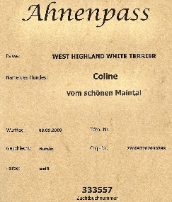 * Ahnenpass und Pedigree in Originalgröße, gerne auf Anfrage * |