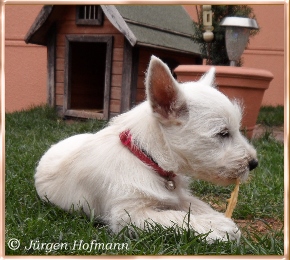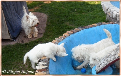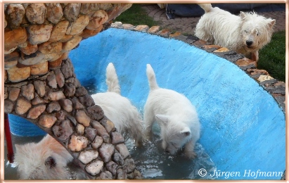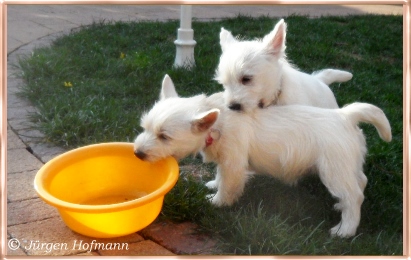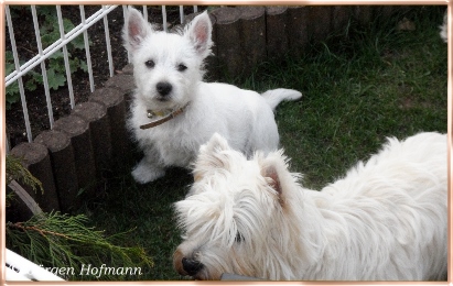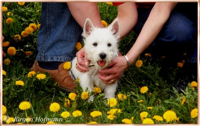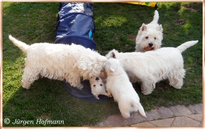 Jede schöne Zeit hat einmal ein Ende, Alle drei haben sich sehr gut entwickelt, haben uns sehr viel Freude gemacht in den 12.Wochen wo sie bei uns heranwuchsen und aus jedem kleinen Kobold wurde ein wesensfester, stolzer kleiner Westie, unerschrocken, fröhlich und zu jedem und allem sehr kontaktfreudig ! Und somit ist uns unser Zuchtziel wieder einmal geglückt, gesunde